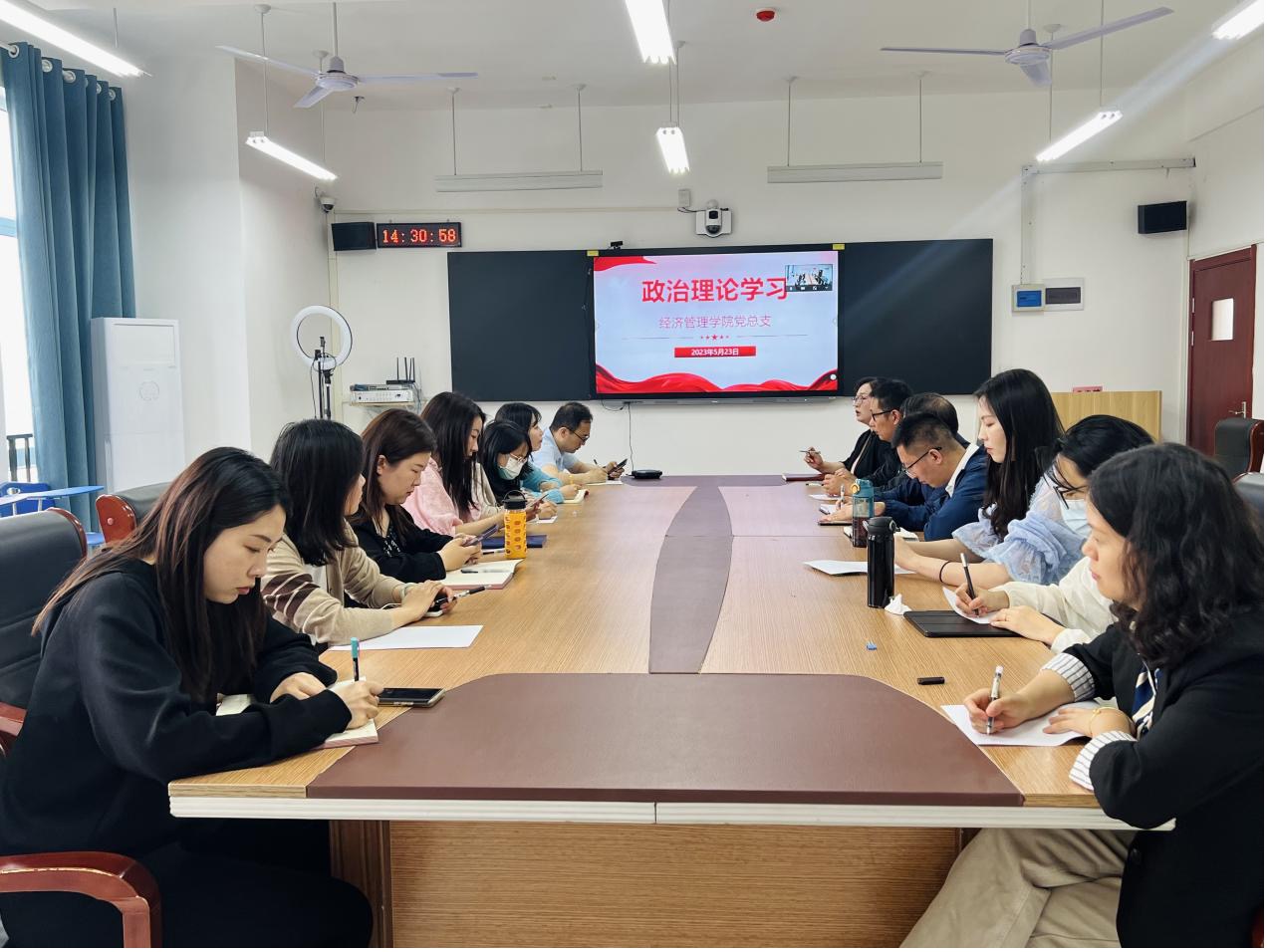 5月23日下午,精选反差婊女神在线党总支在开封校区(北院)B306开展“学习新思想,奋进新时代”主题党日活动,共同学习《习近平著作选读》《习近平新时代中国特色社会主义思想专题摘编》《习近平新时代中国特色社会主义思想学习纲要》等部分内容。以视频连线方式,东西校区全体党员教师参加学习会,书记李兆楠主持会议。