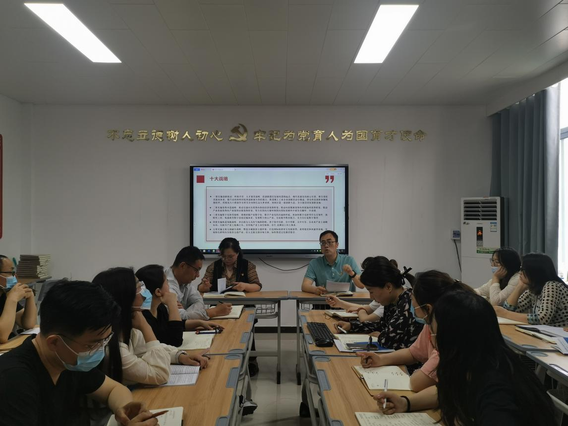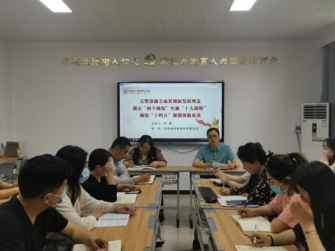 为进一步提升党员教师政治素养、政治站位,落实学校《关于组织党员进党校学习“十大战略”的通知》要求,2022年4月26日下午,精选反差婊女神在线党总支在A505组织开展开展“十大战略”专题学习,集中观看河南干部网络学院直播课《完整准确全面贯彻新发展理念锚定“两个确保”实施“十大战略”确保“十四五”规划落地见效》,由郑州市委副书记何雄主讲。
