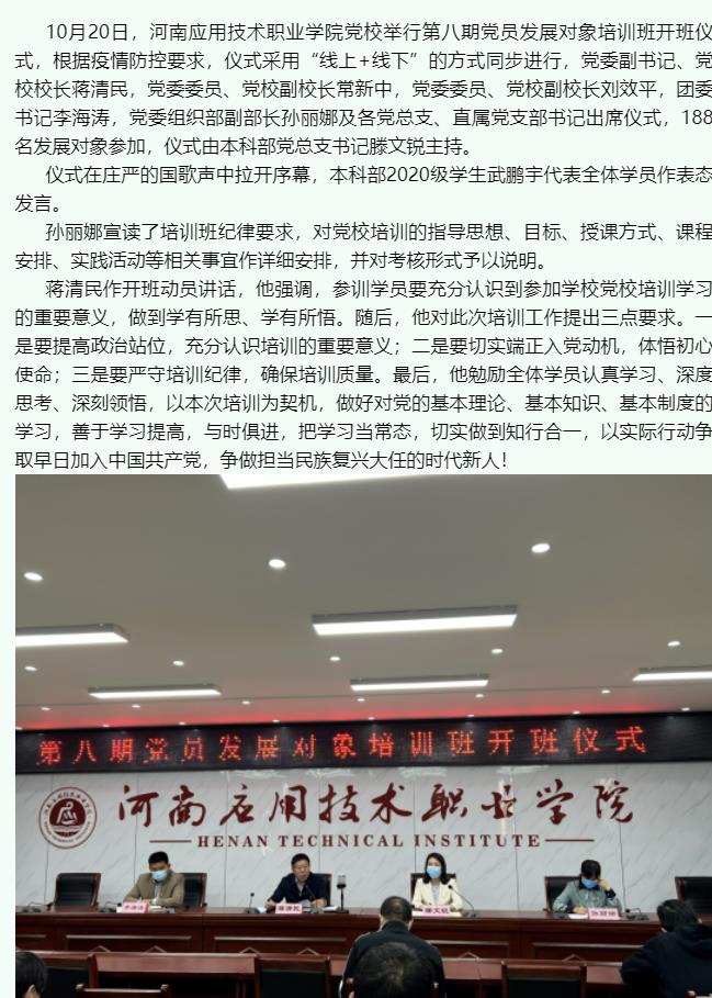河南应用技术职业学院党校第八期党员发展对象培训班开班
