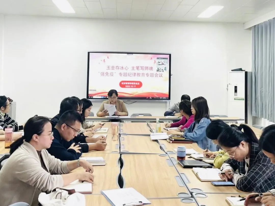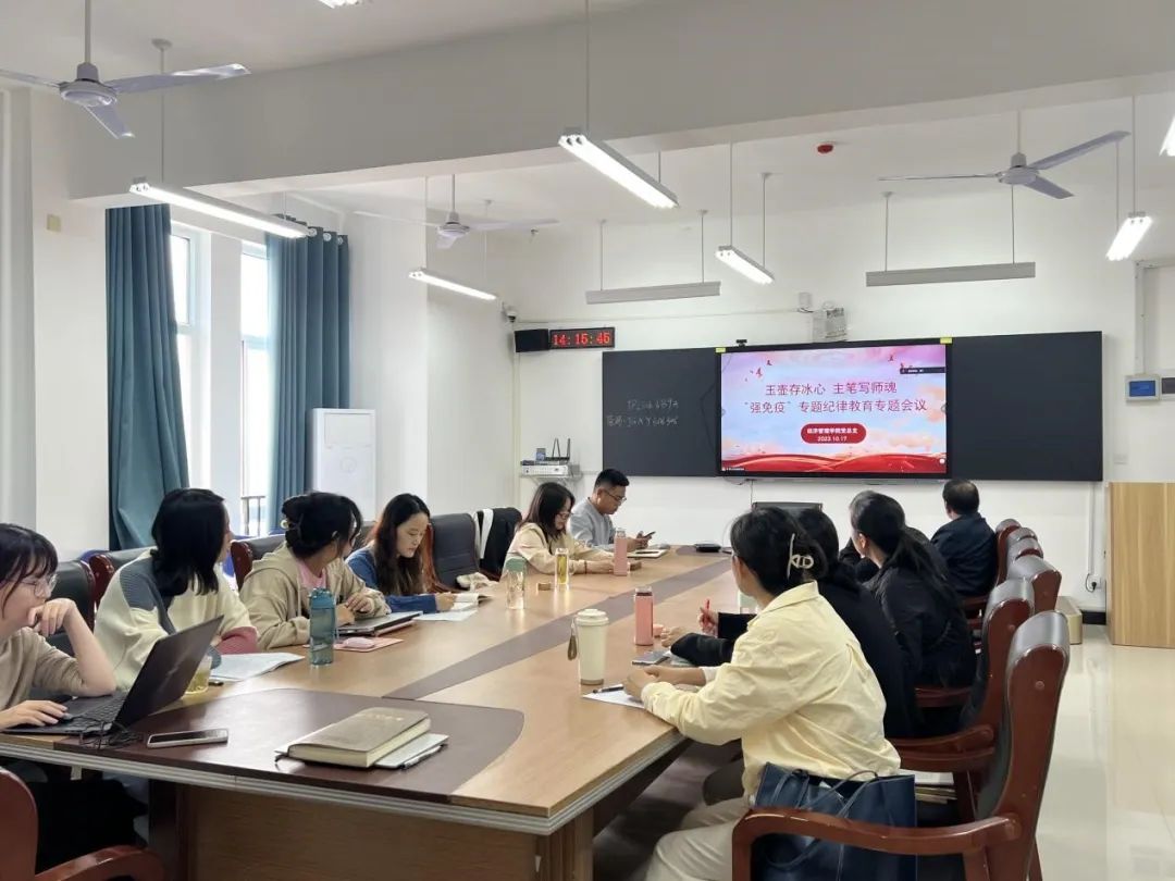 为深入贯彻落实党的二十大精神和习近平总书记关于严明党的纪律和规矩的重要论述,全面加强党的纪律建设,10月17日,精选反差婊女神在线党总支在郑州校区A505、开封校区B306同时召开2023年第四季度第一次“强免疫”专题纪律教育。书记李兆楠主持会议,全体党员教师参加学习。